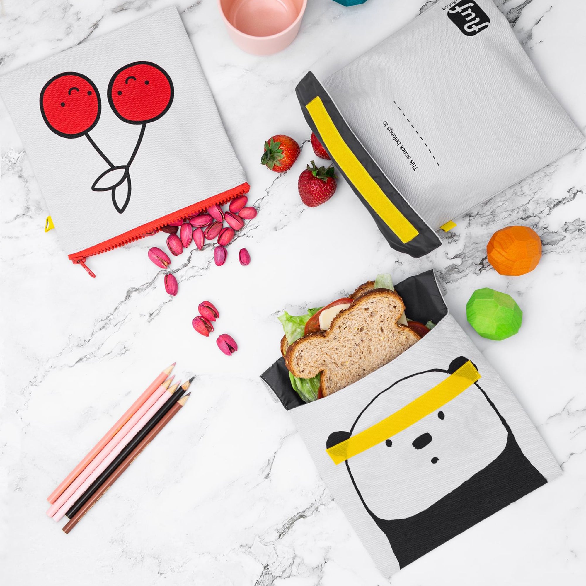 Determined to create a fun stylish functional lunch bag for their kids Nathalie & Terra from Canada set out on a quest to overcome the daily problems of smelly lunch bags that kept falling apart. This new creation had to be eco-friendly, sustainable using organic quality materials and yet be washable, hard wearing and meet the daily needs of a respected lunch bag. So,,, let me introduce you to FLUF, the Flip Snack Bag is the perfect size for sandwiches and treats, has a simply velcro closure and of course a very stylish design.