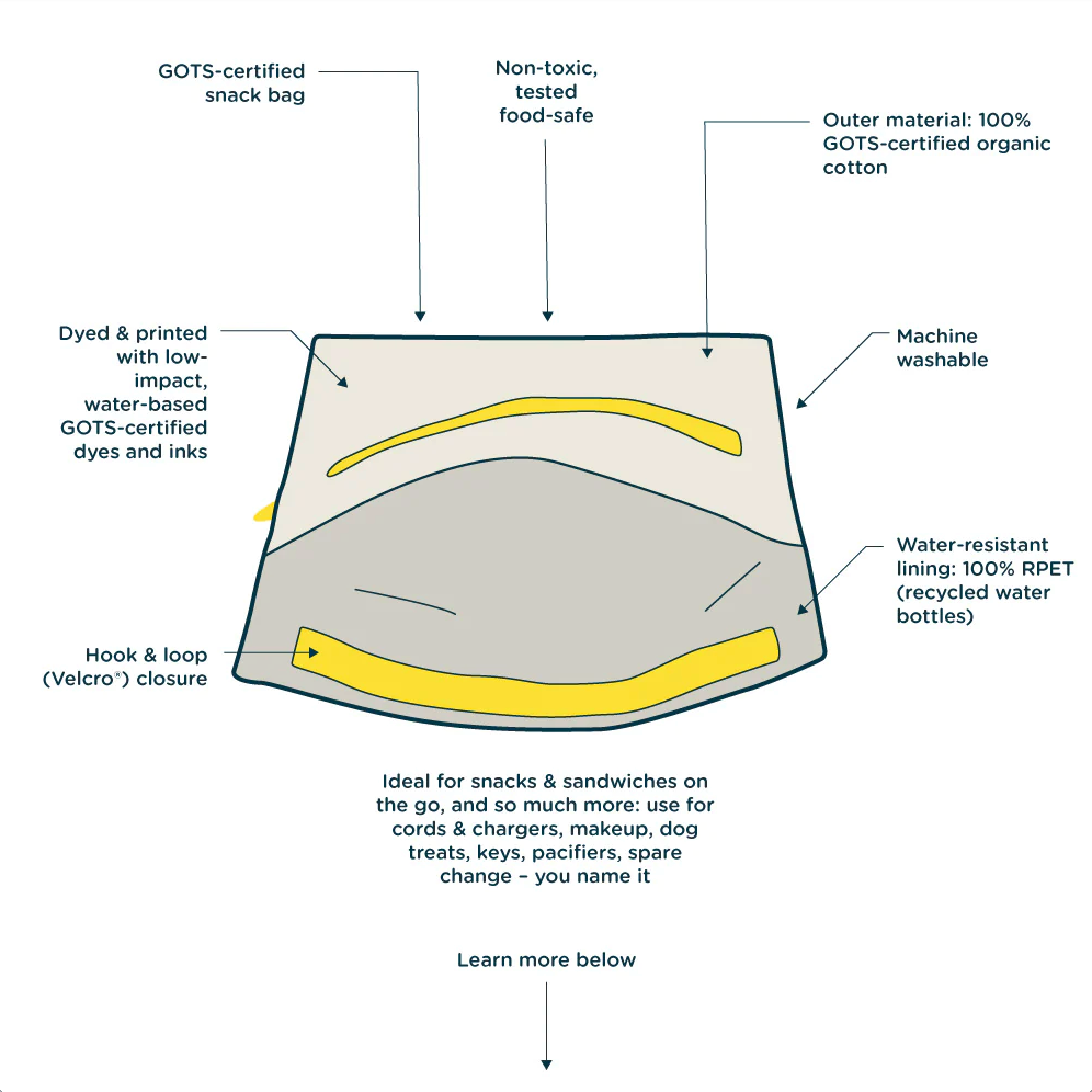• Bag: 100% GOTS-certified organic cotton