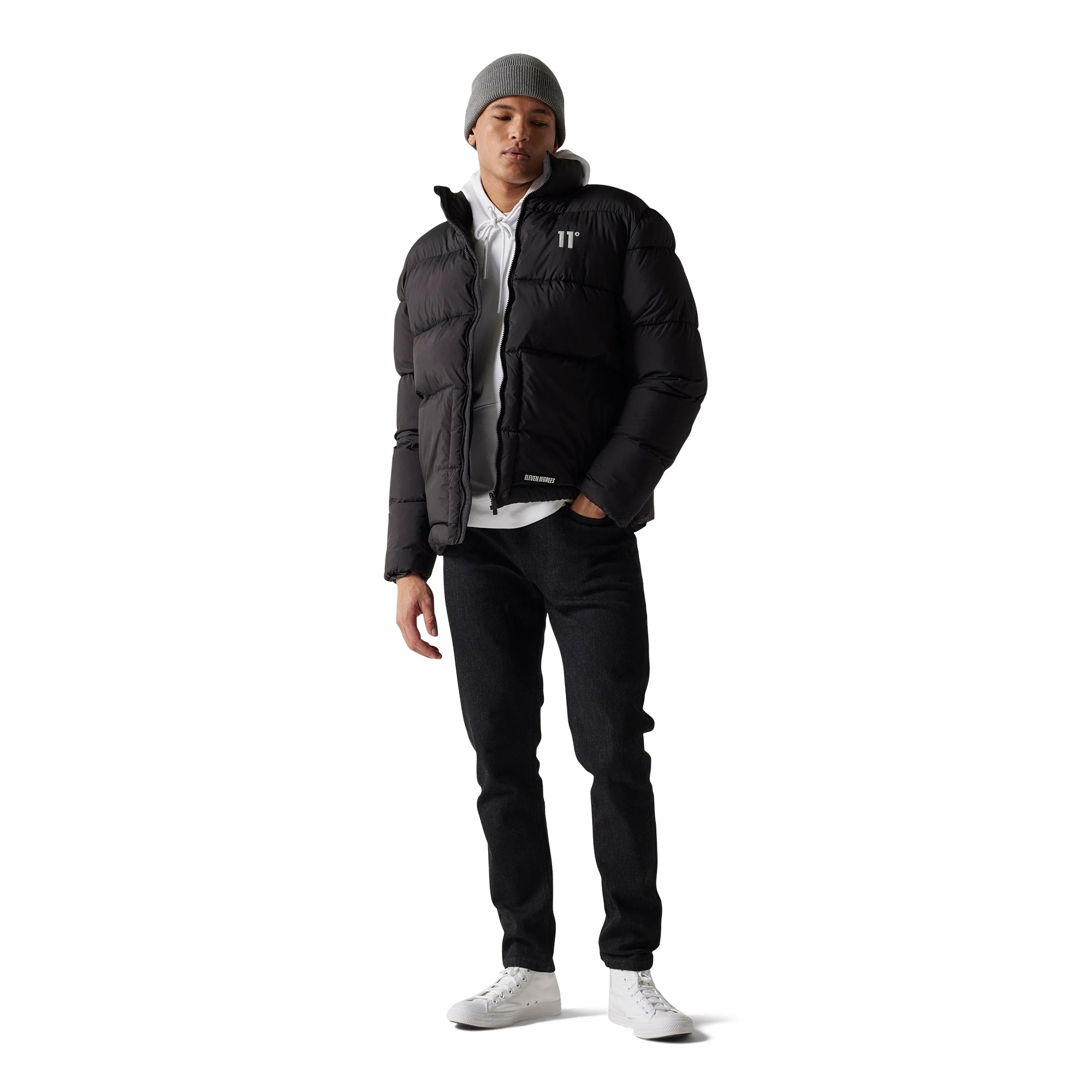 11 Degrees clothing collection was launching in 2014 by Geordie Shore’s Gaz Beadle, searching for a clean modern urban fashion look. Applying innovative design, subtle engineered seams and of course the Iconic branding that is 11 Degrees. The best selling silhouette by 11Degrees, the fully padded jacket with subtle branding detail and functional styling.