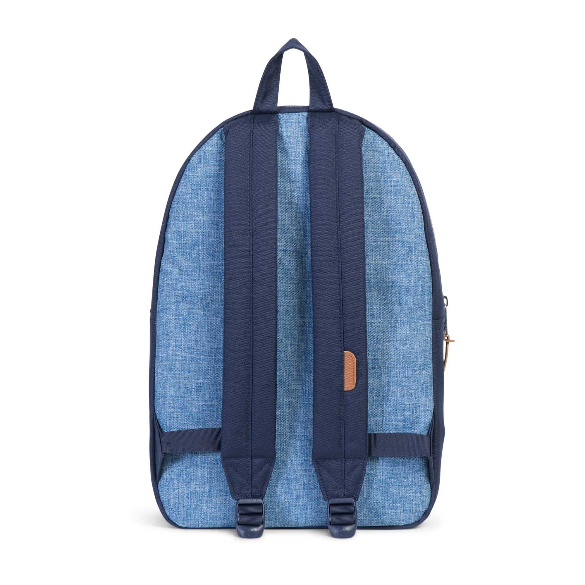 With small twists on what is essentially a vintage silhouette the Settlement backpack by Herschel Supply Co. Is the perfect fit for school, collage or the office environment. Lined with the brand's iconic striped fabric, the generous main compartment contains a 15"/16' laptop sleeve, while the front pocket is fitted with a key clip and provides an additional storage option. The exposed metal zips and pebble leather zip pulls give a refined finish, the breathable air mesh padded shoulder straps also ensure all-day comfort. Manufactured in the companies unique EcoSystem™ 600D Fabric, made from 100% recycled post-consumer water bottles, this includes the internal fabric also, you're in no way harming the environment.