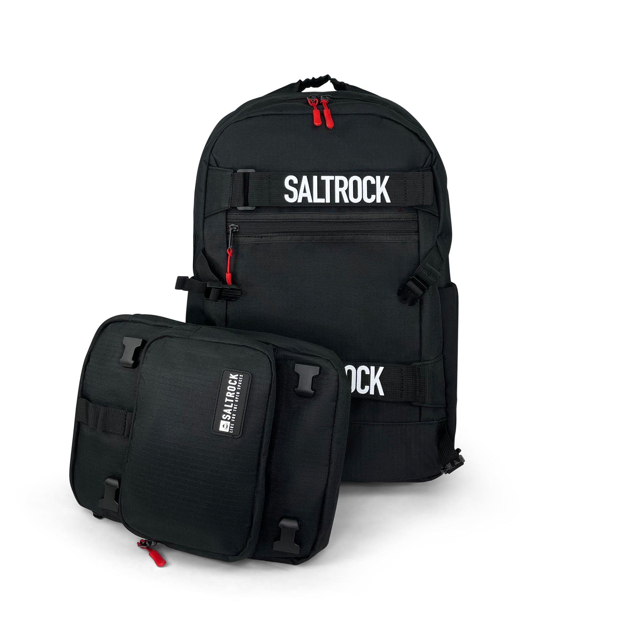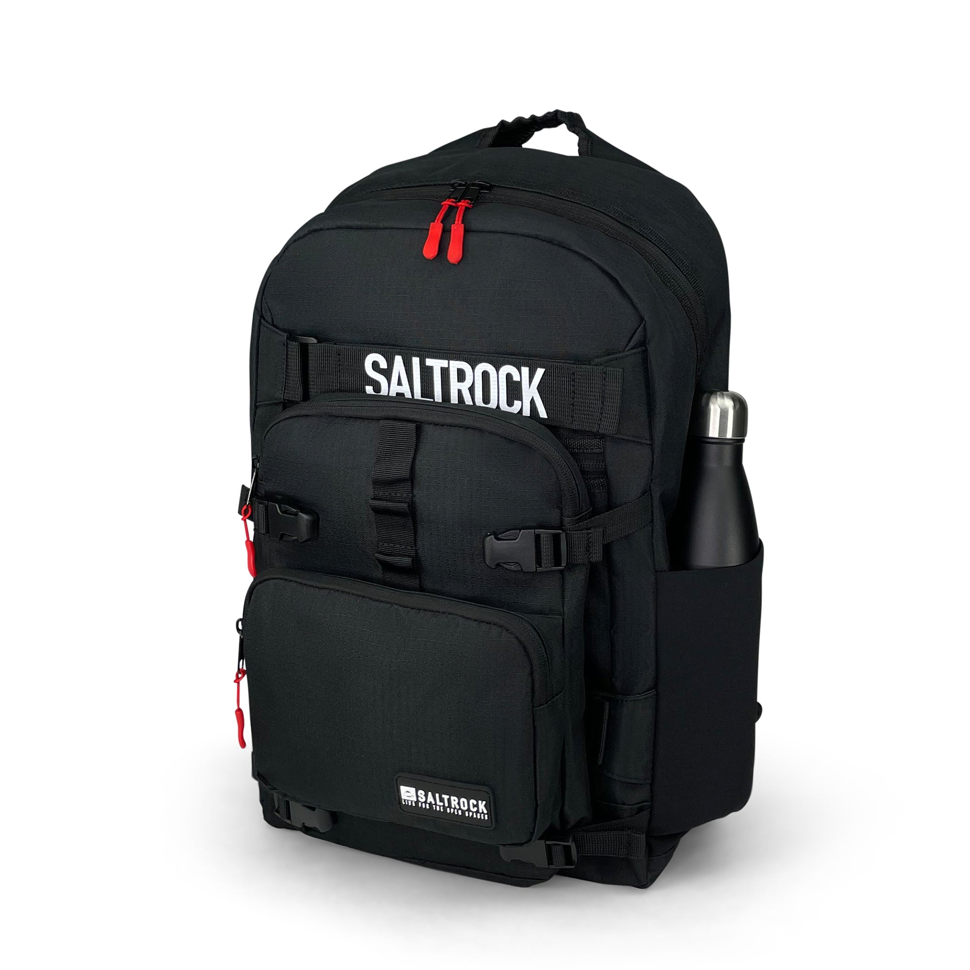 The town of Salt Rock situated 40 minutes outside Durban, South Africa, was a favourite surfing spot for the two brothers Ross and Angus Thomson who would leave their homeland and travel the world in search of new surf in safe waters. Skatepack Pro backpack is a new addition to the already established backpack collection from Saltrock, finished with a tonne of features, Internal organiser sleeve, water bottle pockets, adjustable straps for skateboard, removable front accessory bag etc